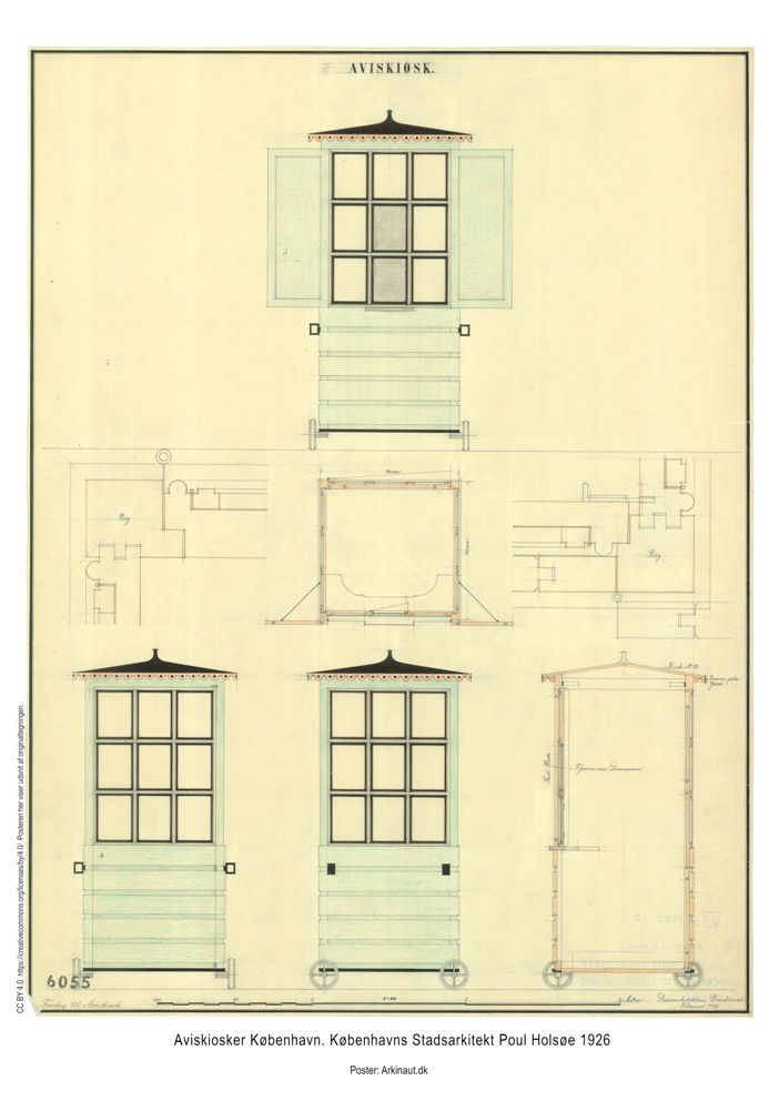 Aviskiosker. Københavns Stadsarkitekt Poul Holsøe 1926.