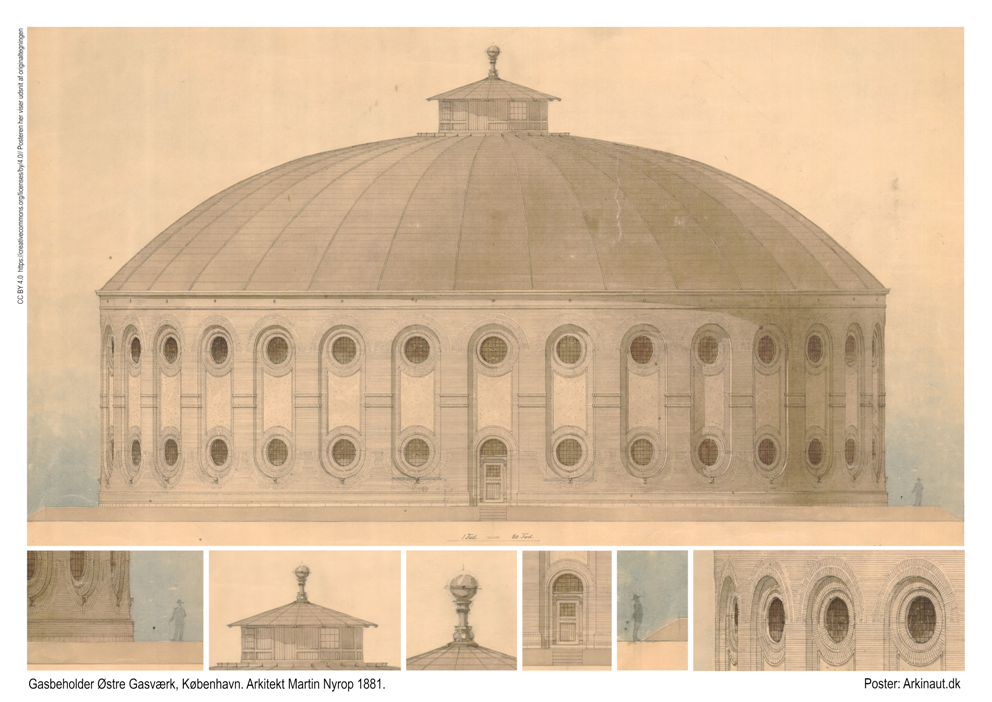 Gasbeholder Østre Gasværk, København arkitekt Martin Nyrop 1881.