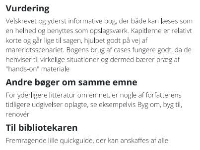 Anmelder skrev: "Fremragende lille quickguide som kan anskaffes af alle" (lektørudtalelse fra bibliotekerne)